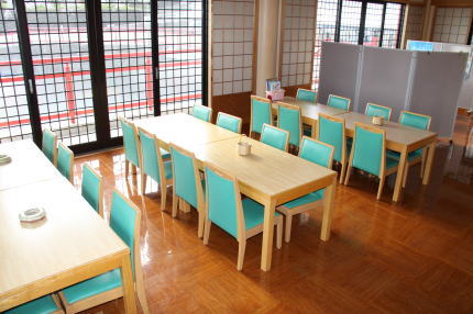 お薬師様をお祀りしております本堂と休憩所です。いつでもご休憩して頂けるようお茶などをご用意しております。尚25名様程度まででしたらこちらのホールを使って年忌等の時のお食事の場としてもお使いいただけます。 |